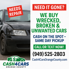 Stop letting that junk car take up space. Turn it into cash today with Cash 4 Cars Orange County.